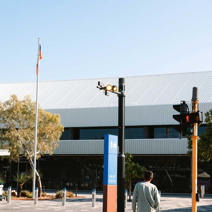 The Perth Airport Terminal 1 development in Western Australia features modern urban design and landscaping that enhances the functionality and aesthetic appeal of the airport.